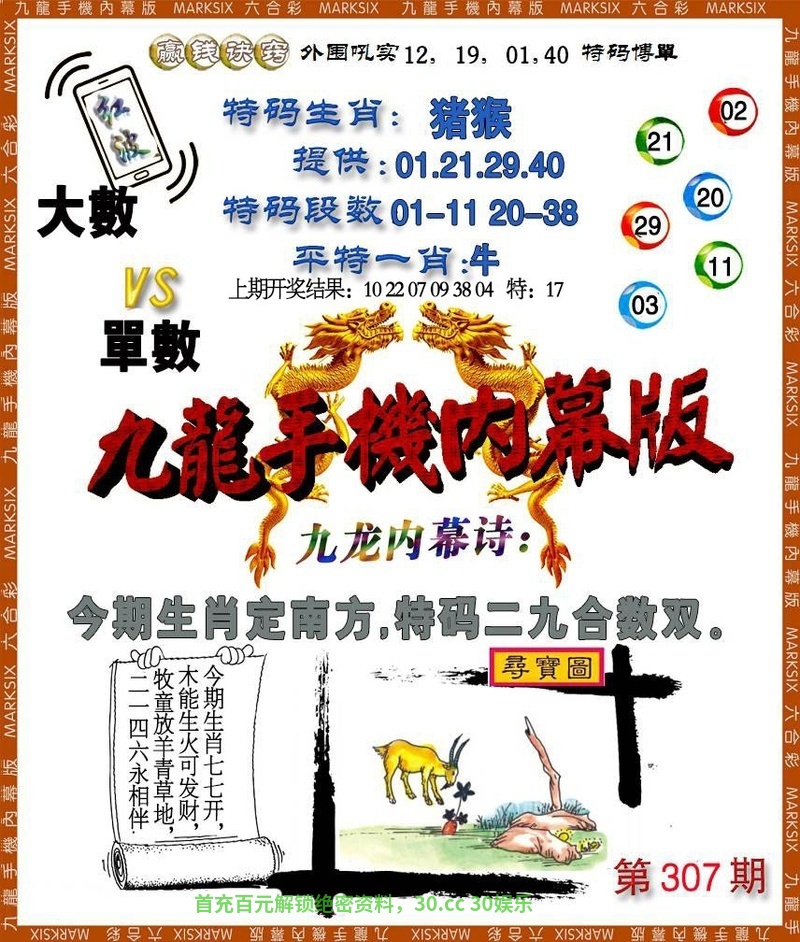 | 307期:七肖中特╠马牛狗虎龙蛇鼠╣开:狗20准 |