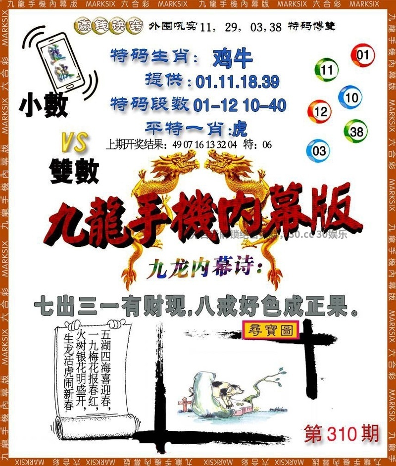 | 310期⑨肖:龙马虎猴猪狗蛇羊牛 |